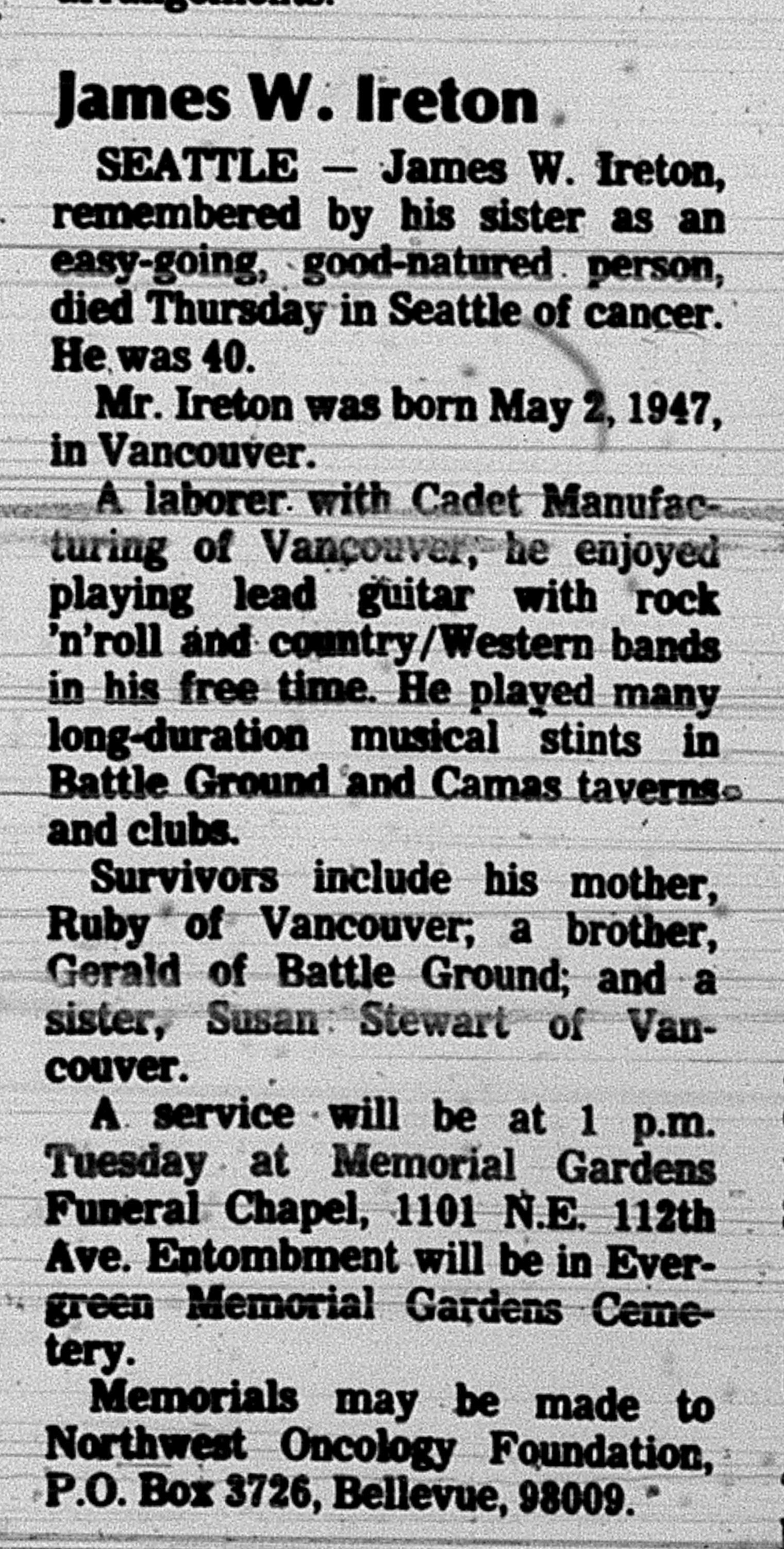 No obituary published, per funeral home. Death notice published Oct. 6, 2021 in Columbian.