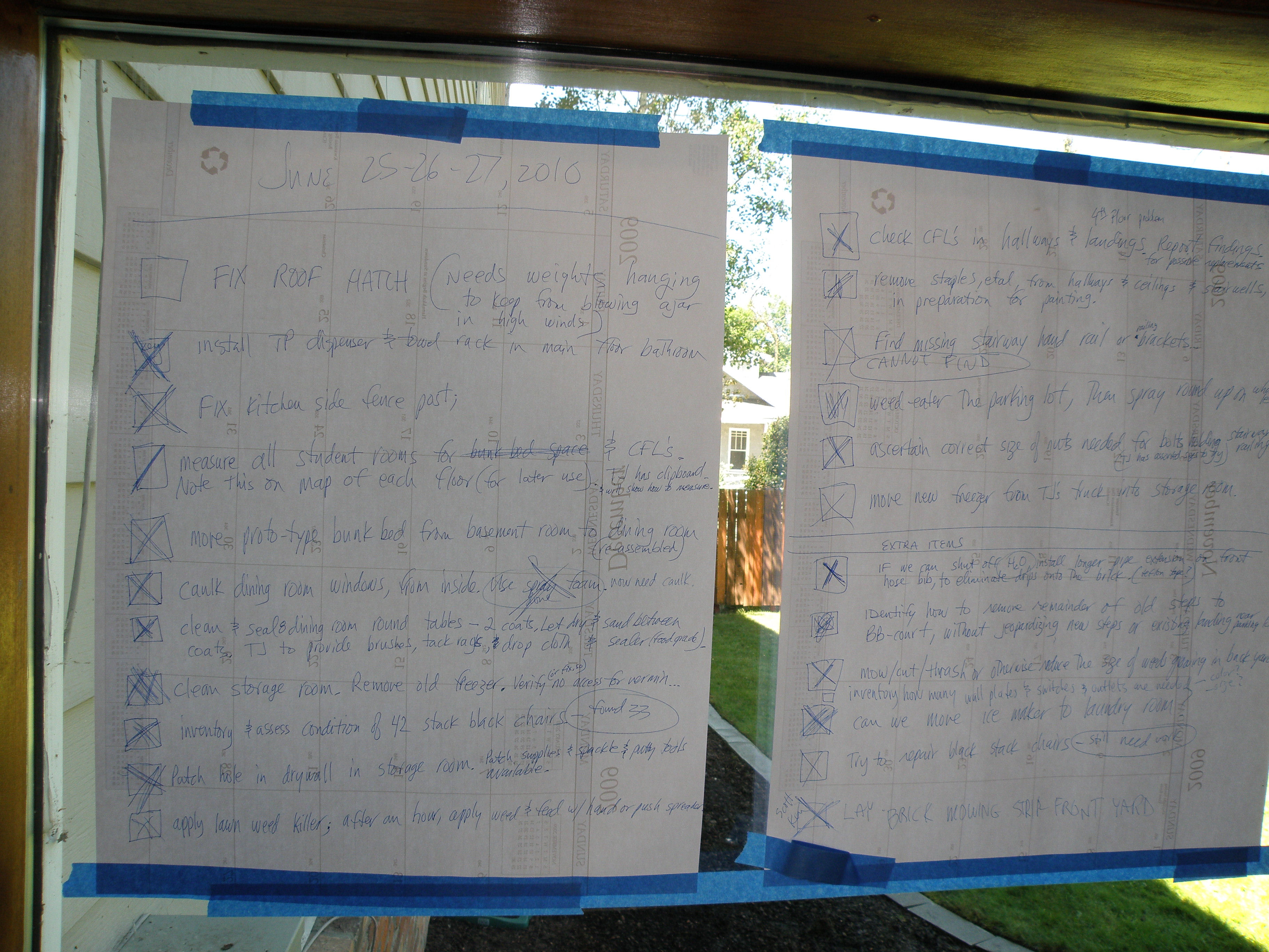 The project list was posted in the foyer, with different tasks checked off as they were completed.