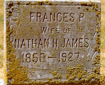 Mary James, daughter of Henry and Abigail James. Mary was the wife of Major Hawes, her first husband. Mary was the wife of Charles Skuse, her second husband. Mary is buried in Two Rivers Cemetery, near the town of Deerfield in Isabella County, Michigan. The year of Mary's birth may look like 1833 but under close examination is truely 1855. |
